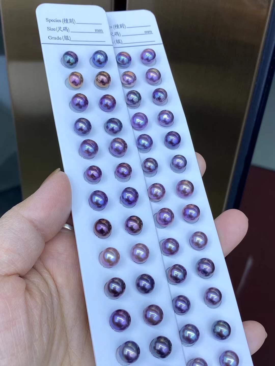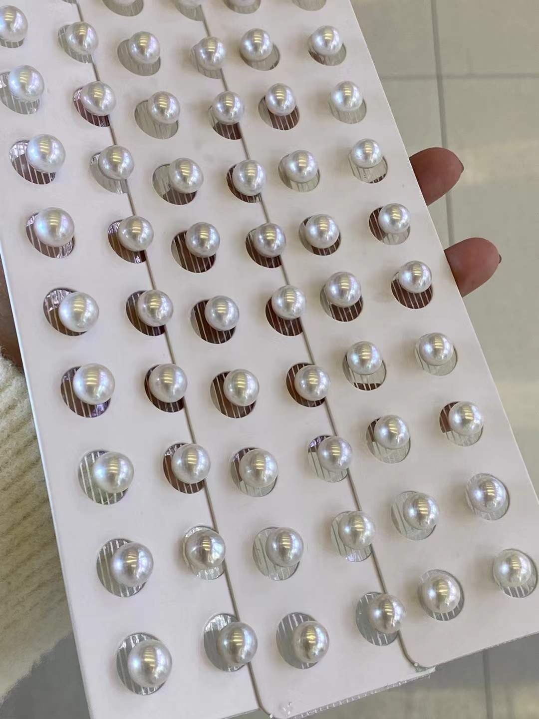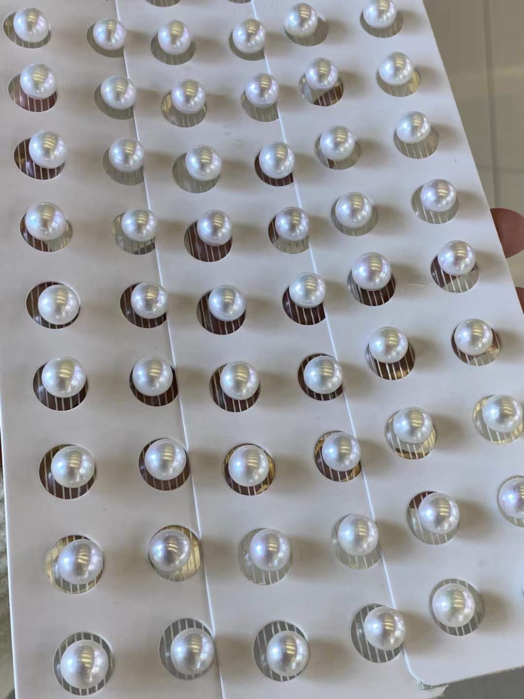 8-9mm, non-bead round, very lightly blemished, high luster, white with pink overtone. New arrival just in.