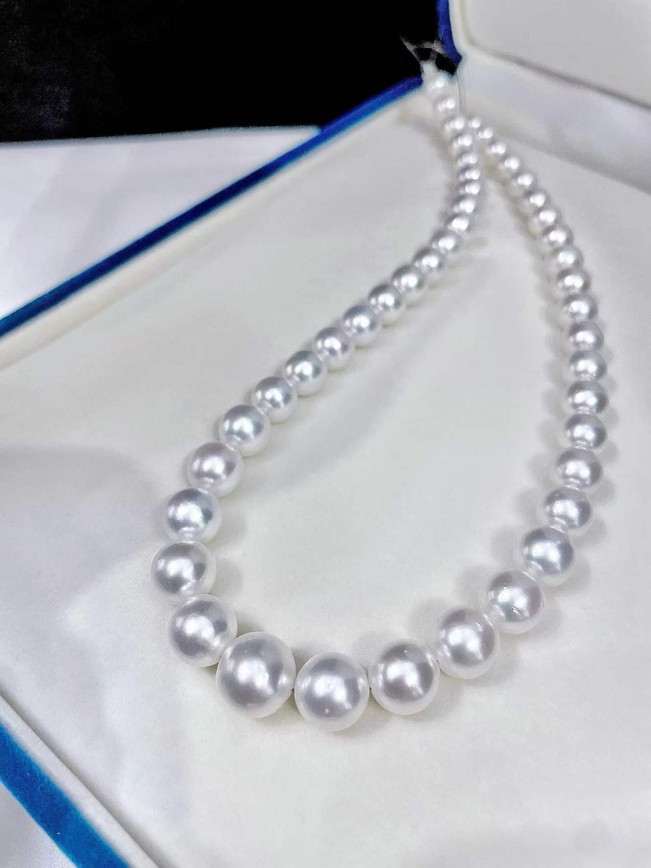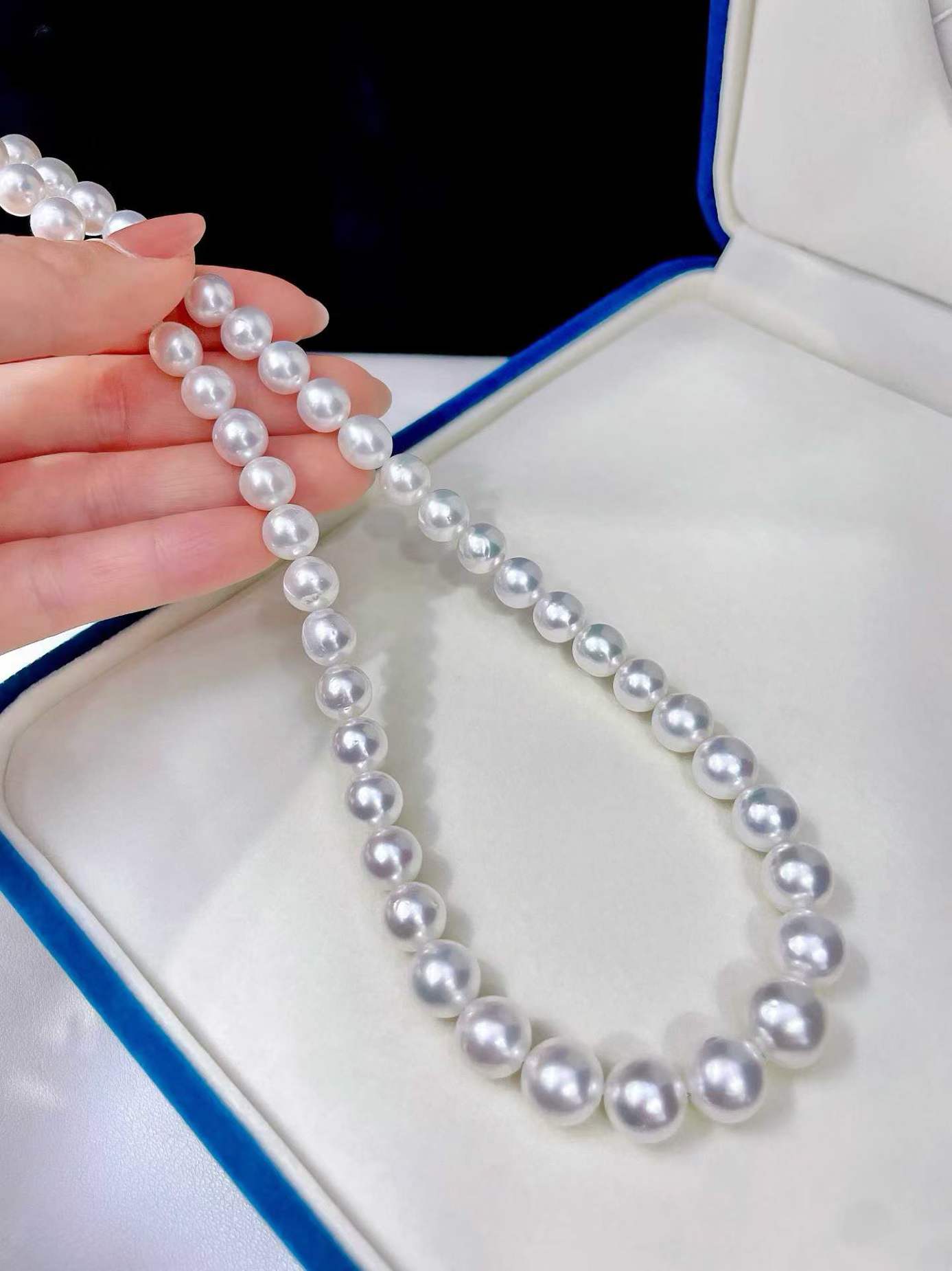 An unbeatable-value Australian pearl strand: 8-11.6mm, near-round, moon-white tone, lightly blemished. At this quality for under 10,000 RMB, it’s an easy buy.