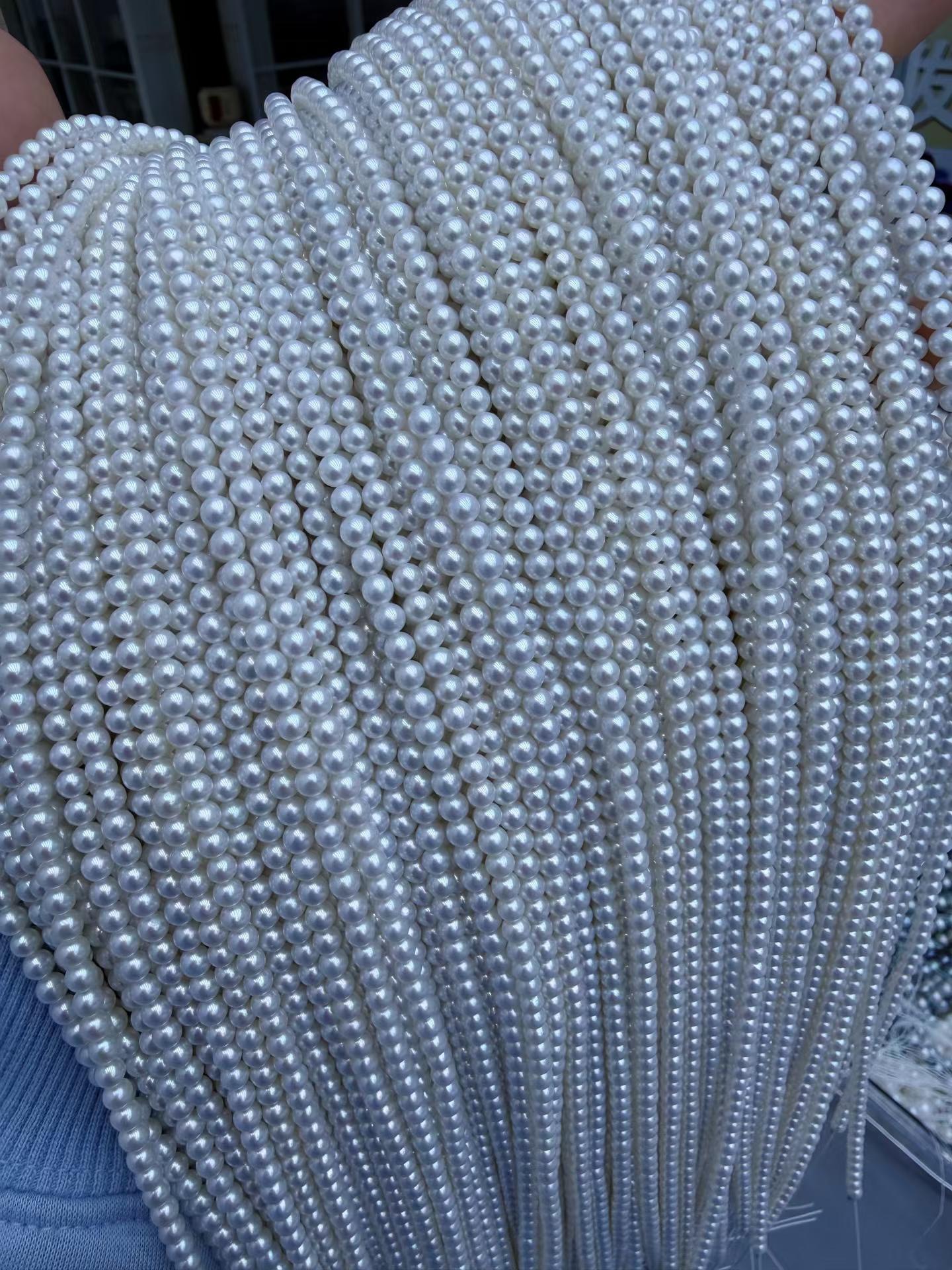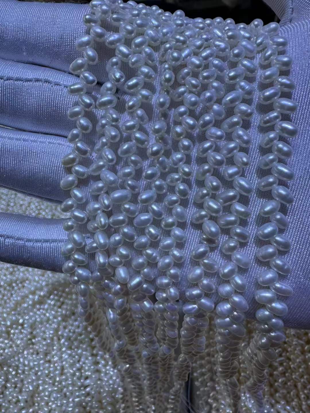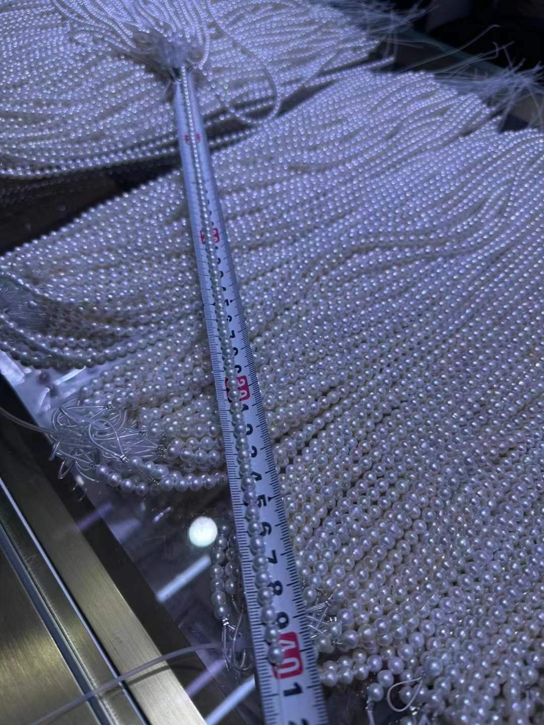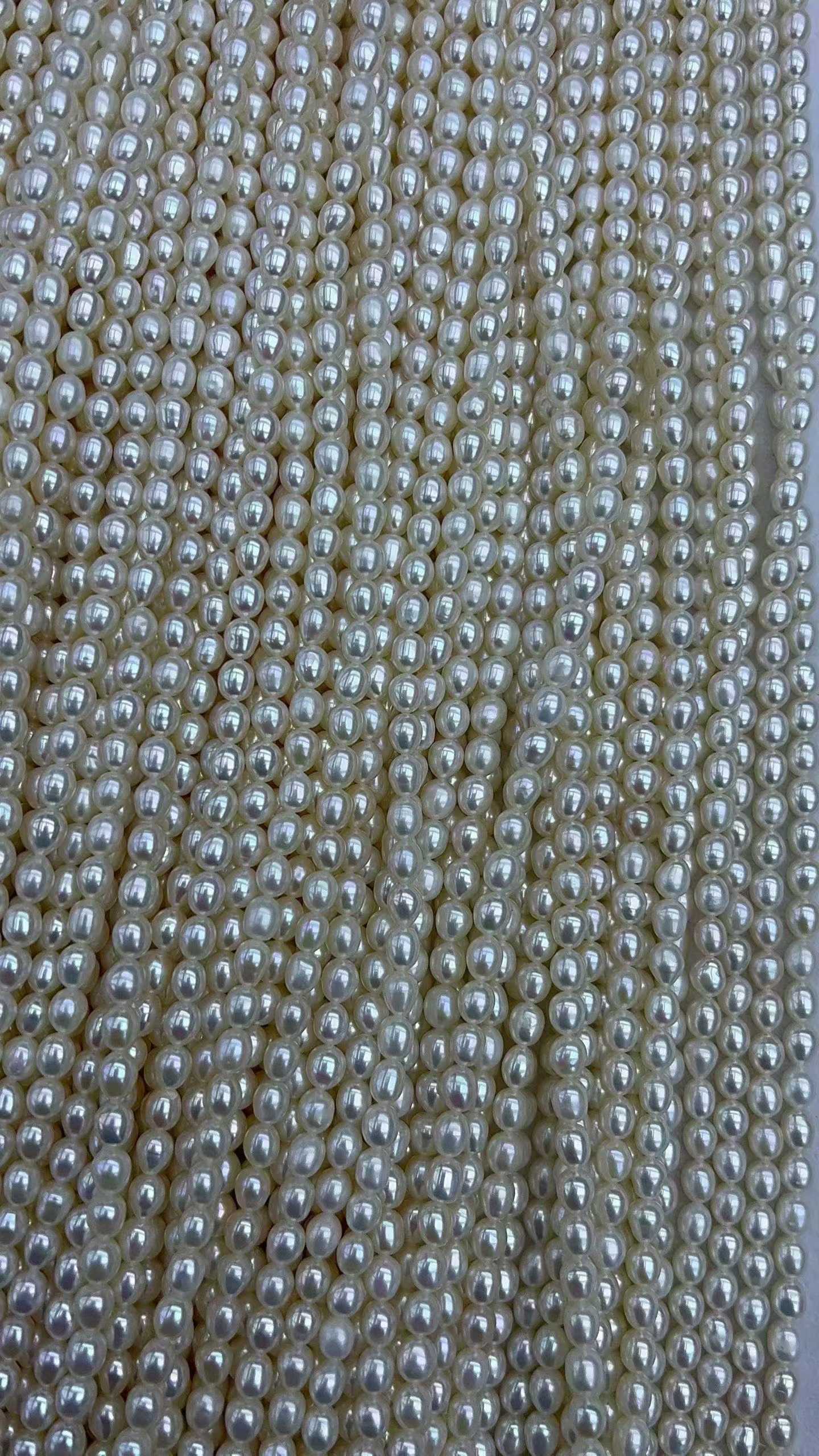 New 3.5-4mm baby pearls with extremely strong white luster, bright white body color, and basically flawless quality. Each one is bright white. About $36 per strand, with an S925 silver clasp included.
