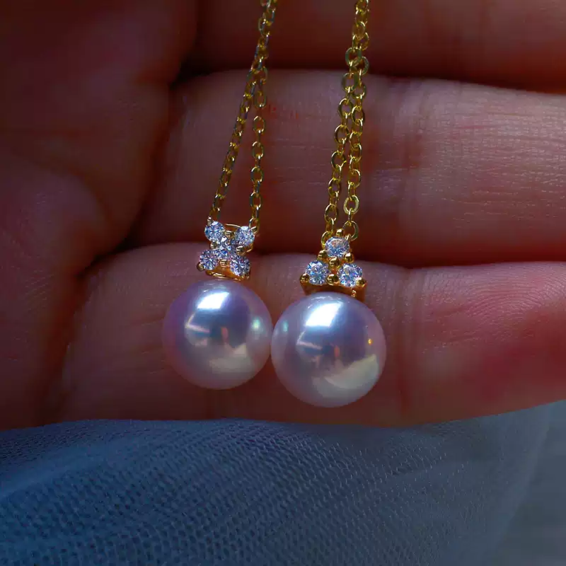 18K Yellow Gold Triangle Design with Akoya