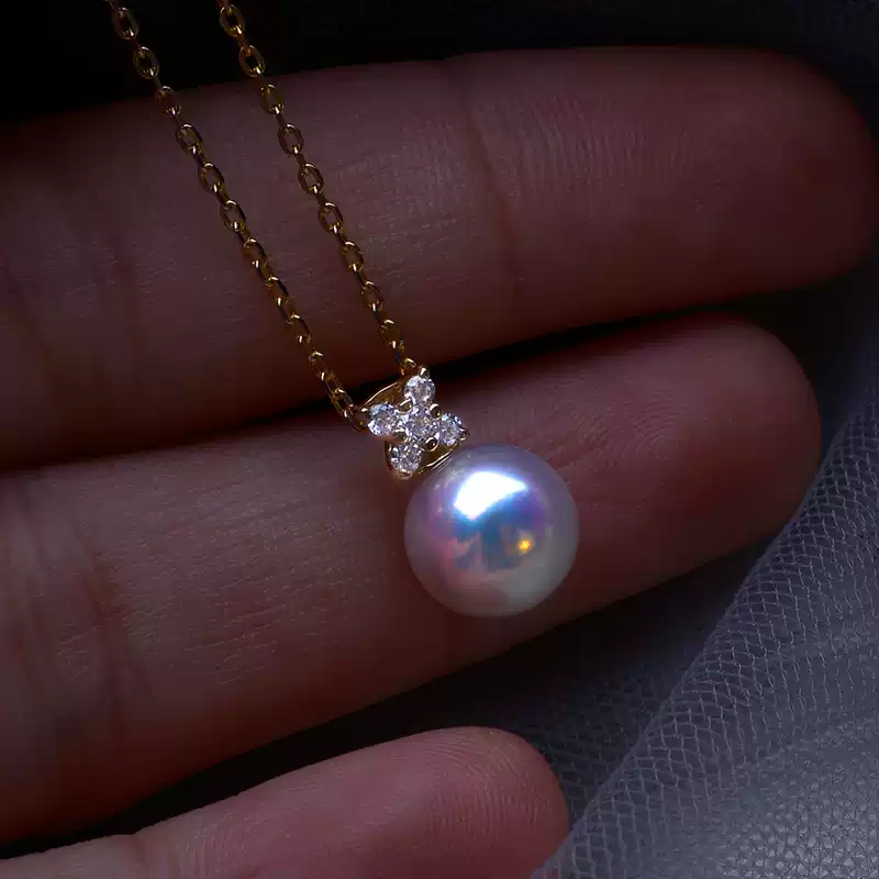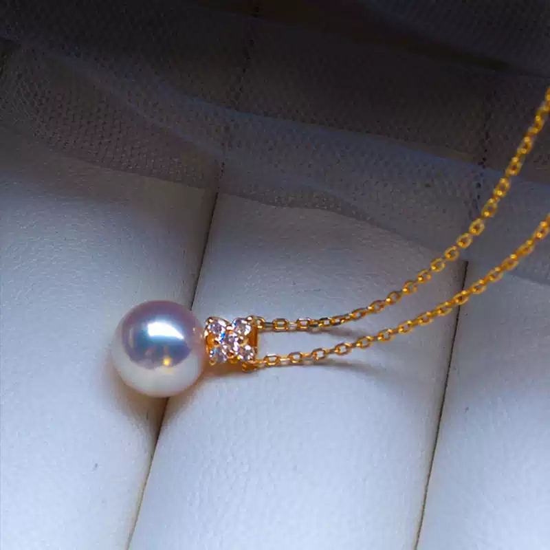 18K Gold Akoya Round Pearl Pendant Choker, High-Luster Hanadama-Grade Pearl