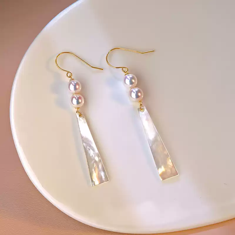 Be the first to review “Akoya Pearl and Mother-of-Pearl Long Hook Earrings in 18K Gold, Hanadama-Grade, Elegant Style”