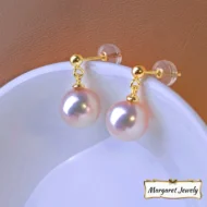 Be the first to review “Akoya Pearl Drop Earrings in 18K Gold, Round Hanadama Pearls with Excellent Luster”