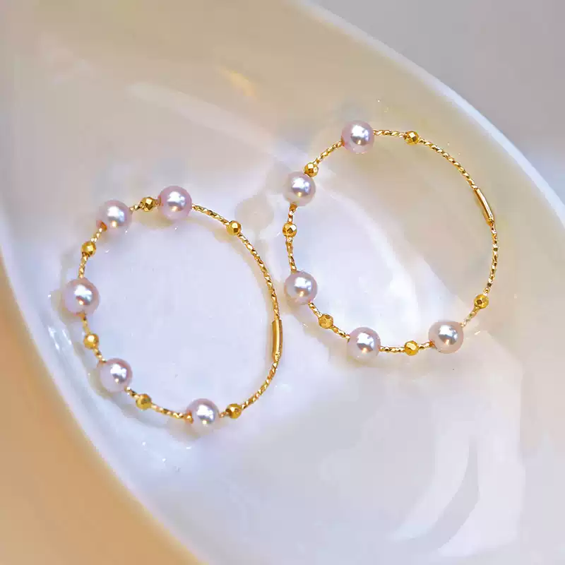 Akoya Pearl Hoop Earrings in 14K Gold, Round Pearls with Excellent Luster, Elegant Style