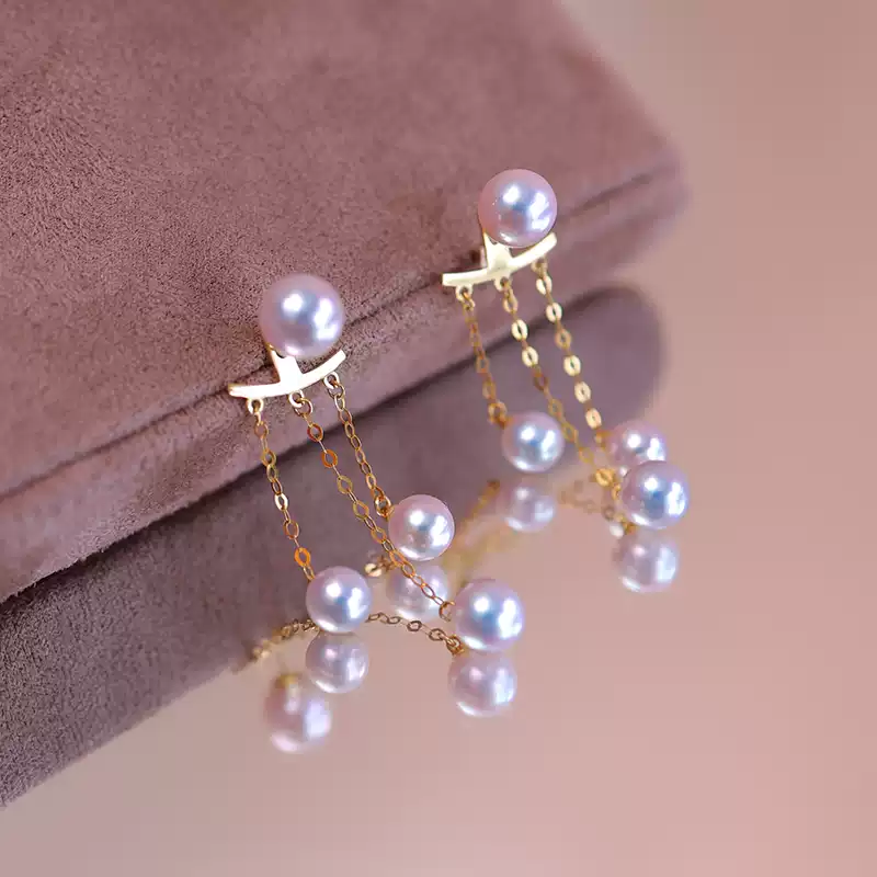 Akoya Pearl Two-Way Earrings in 18K Gold, Hanadama-Grade Pearls, Wearable as Studs