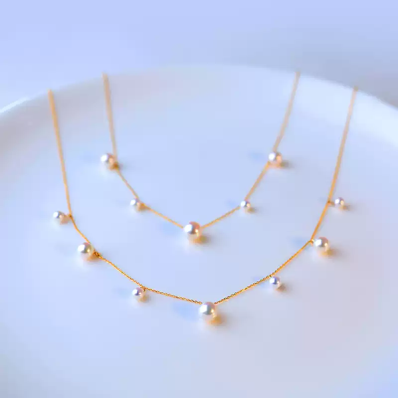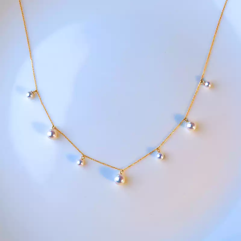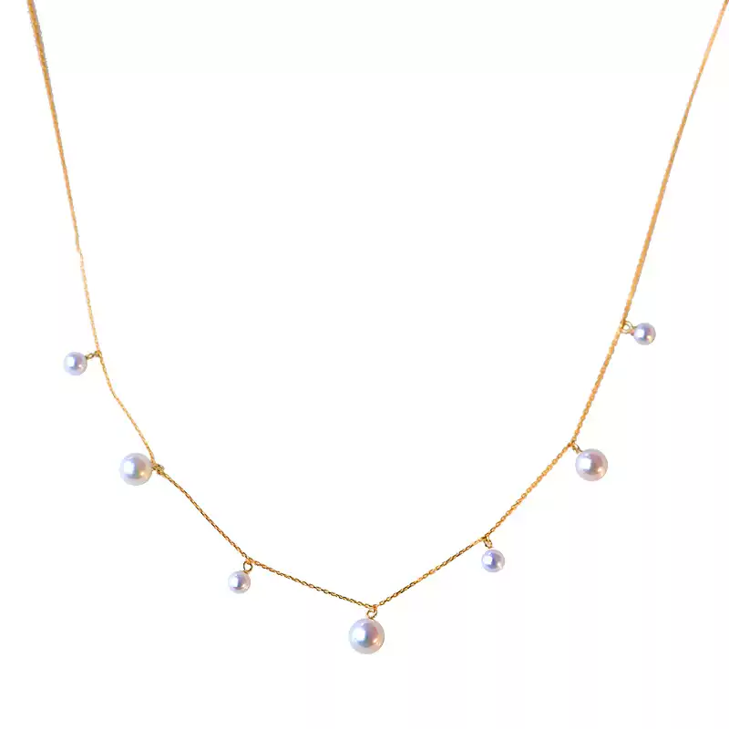 Akoya Scattered Pearl Choker, Baby Pearls with Aurora Luster, 18K Yellow Gold