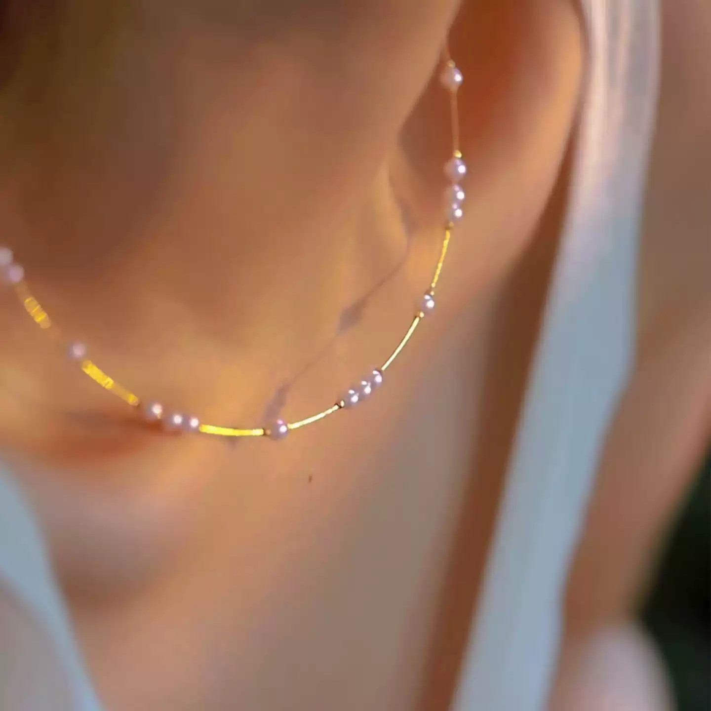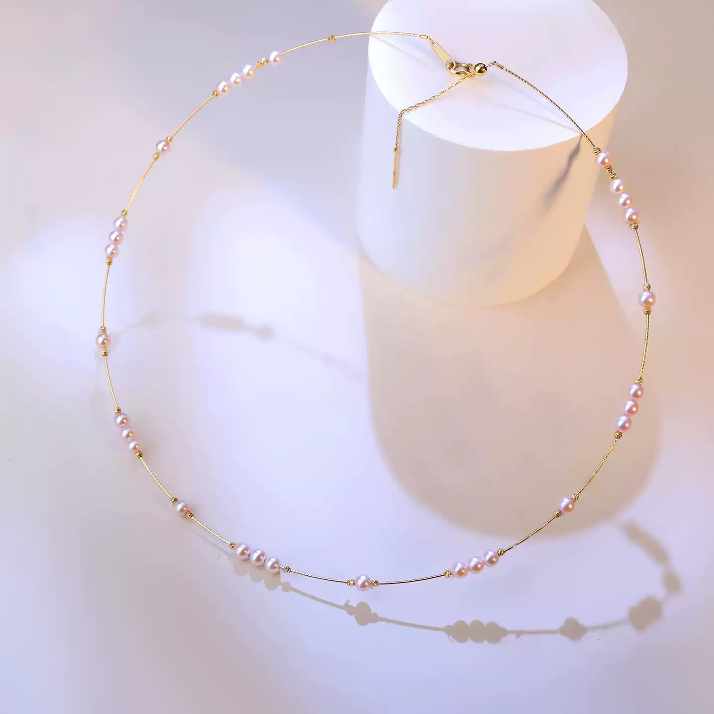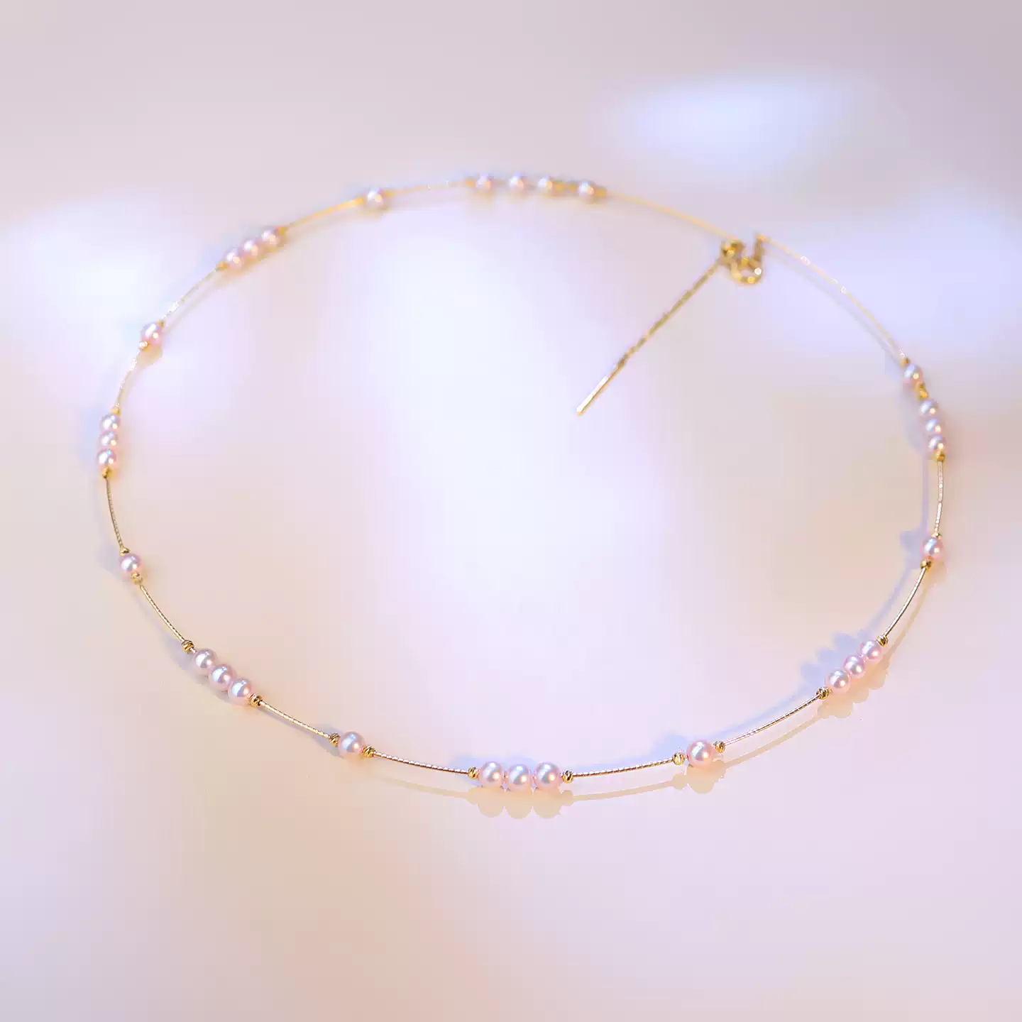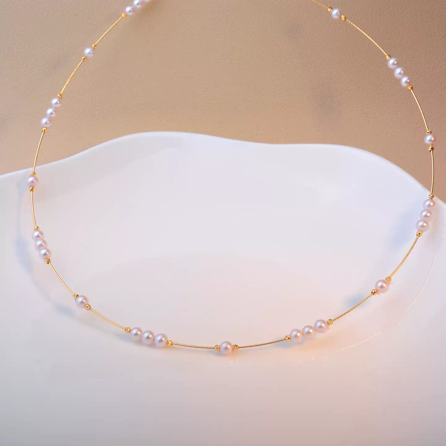 Akoya Scattered Pearl Choker with Excellent Luster, 18K Gold Collar Style, Refined Minimalist Look