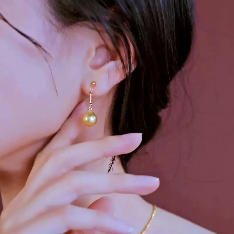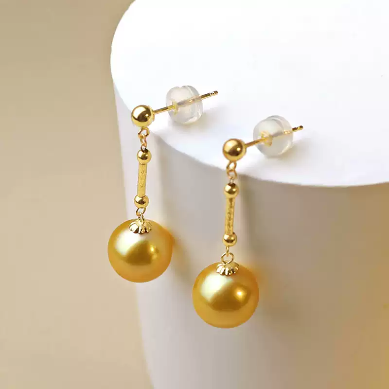 18K Yellow Gold South Sea Golden Pearl Earrings